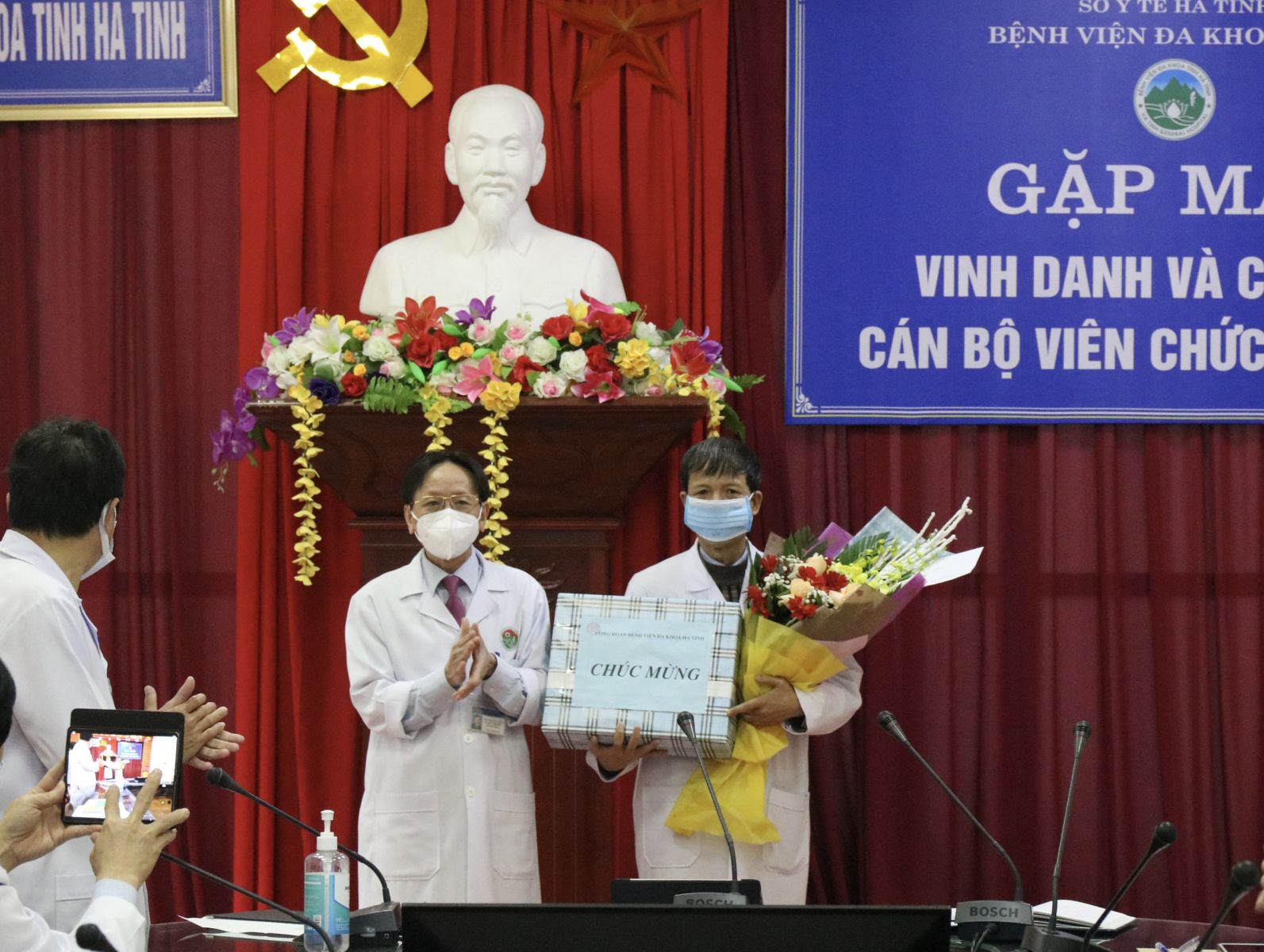 Lãnh đạo bệnh viện tặng hoa vinh danh...