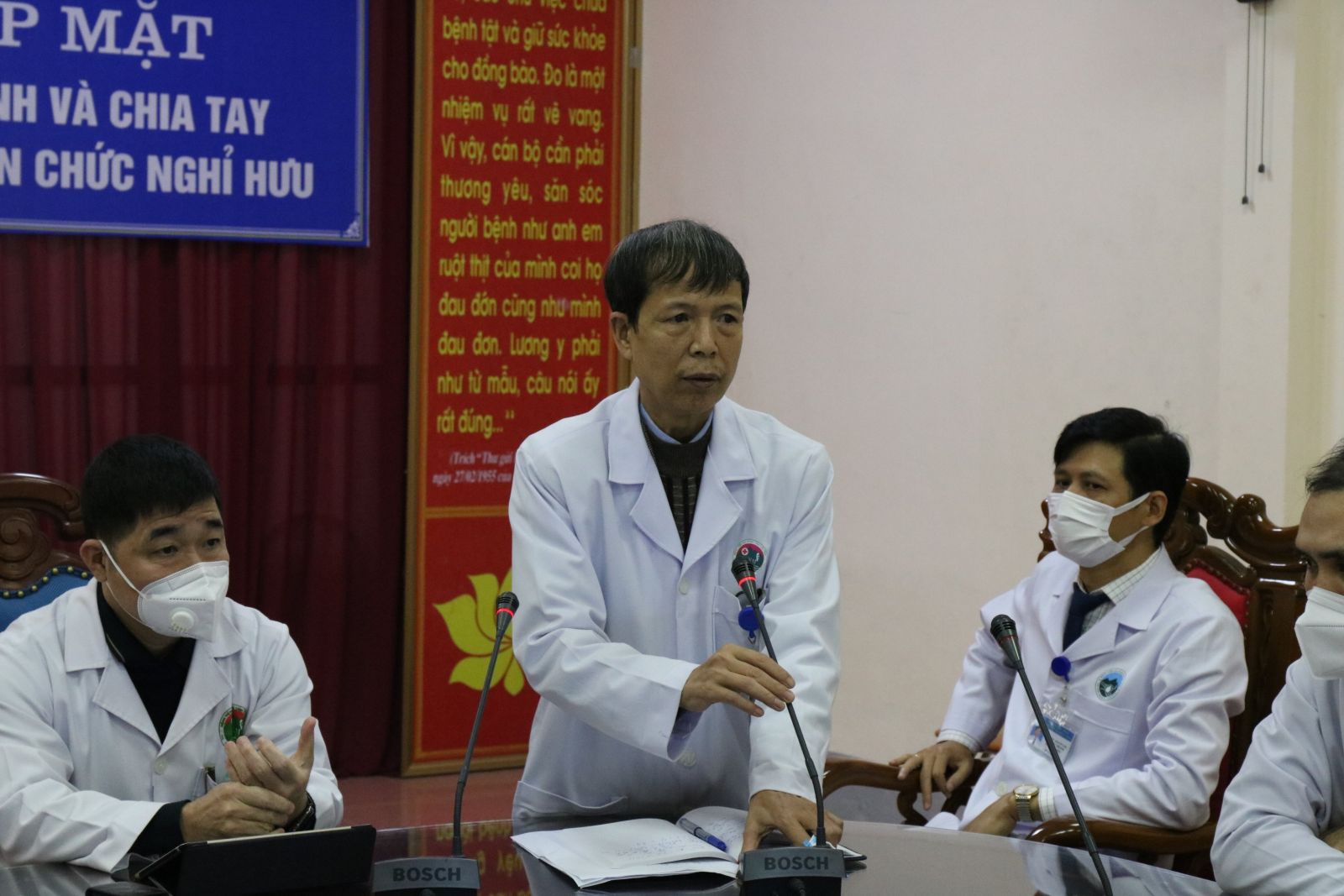 Đồng chí Hoàng Quang Trung, Bí thư Đảng ủy, Giám đốc bệnh viện chủ trì buổi gặp mặt, cùng tham dự có các đồng chí trong Ban thường vụ, Ban Giám đốc, Ban chấp hành công đoàn và các đồng chí lãnh đạo các khoa, phòng trong toàn bệnh viện.