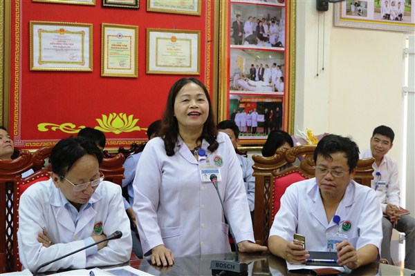 Đồng chí Hoàng Quang Trung, Bí thư Đảng ủy, Giám đốc bệnh viện chủ trì buổi gặp mặt, cùng tham dự có các đồng chí trong Ban thường vụ, Ban Giám đốc, Ban chấp hành công đoàn và các đồng chí lãnh đạo các khoa, phòng trong toàn bệnh viện.