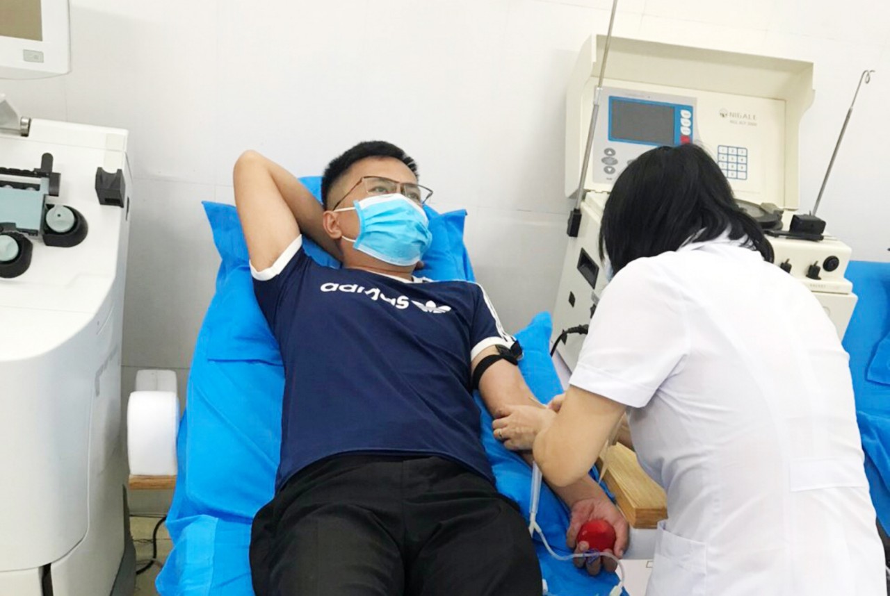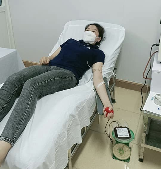 Chị Nguyễn Thị Thùy (huyện Nghi Xuân) hiến máu hiếm để cấp cứu cho một bệnh nhân tại BVĐK tỉnh Hà Tĩnh năm 2021.
