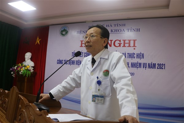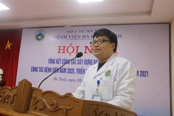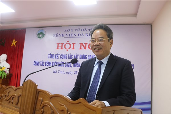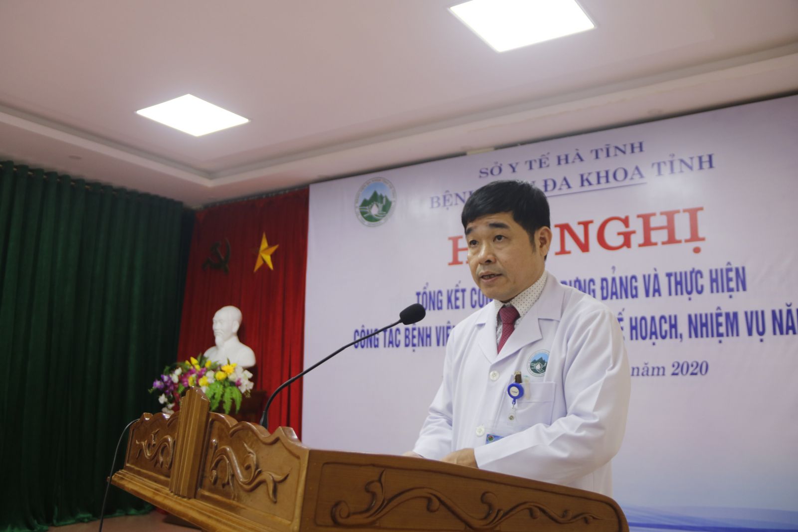 Phát biểu tại Hội nghị, Đồng chí Nguyễn Đình Hải ghi nhận những kết quả đạt được của tập thể cán bộ, viên chức, người lao động Bệnh viện Đa khoa Hà Tĩnh trong năm 2020. Những kết quả đó thể hiện tinh thần đoàn kết nỗ lực của tập thể, sự chỉ đạo sâu sát của Ban giám đốc Bệnh viện, đã làm tốt công tác giáo dục chính trị tư tưởng đối với cán bộ y tế, có nhiều sáng kiến trong đổi mới tác phong, lề lối làm việc, phát huy được tinh thần làm chủ, ý thức tự giác của cán bộ, bác sỹ. Trong thời gian tới, Bệnh viện cần tiếp tục làm tốt công tác giáo dục chính trị tư tưởng, đề cao trách nhiệm của người đứng đầu các khoa phòng; Tiếp tục thực hiện tốt phương châm: Bệnh viện là nhà, phòng khám bệnh là phòng khách, Y đức, giao tiếp là cốt tử, bệnh nhân là trung tâm cho mọi hoạt động của bệnh viện, chuyên môn là quan trọng nhất, đội ngũ cán bộ, viên chức bệnh viện là tài sản vô giá và phải ra sức chăm lo đời sống vật chất, tinh thần cho người bệnh cũng như cán bộ viên chức bệnh viện. Ra sức phấn đấu xây dựng bệnh viện: An toàn, thân thiện, bệnh viện vì dân.