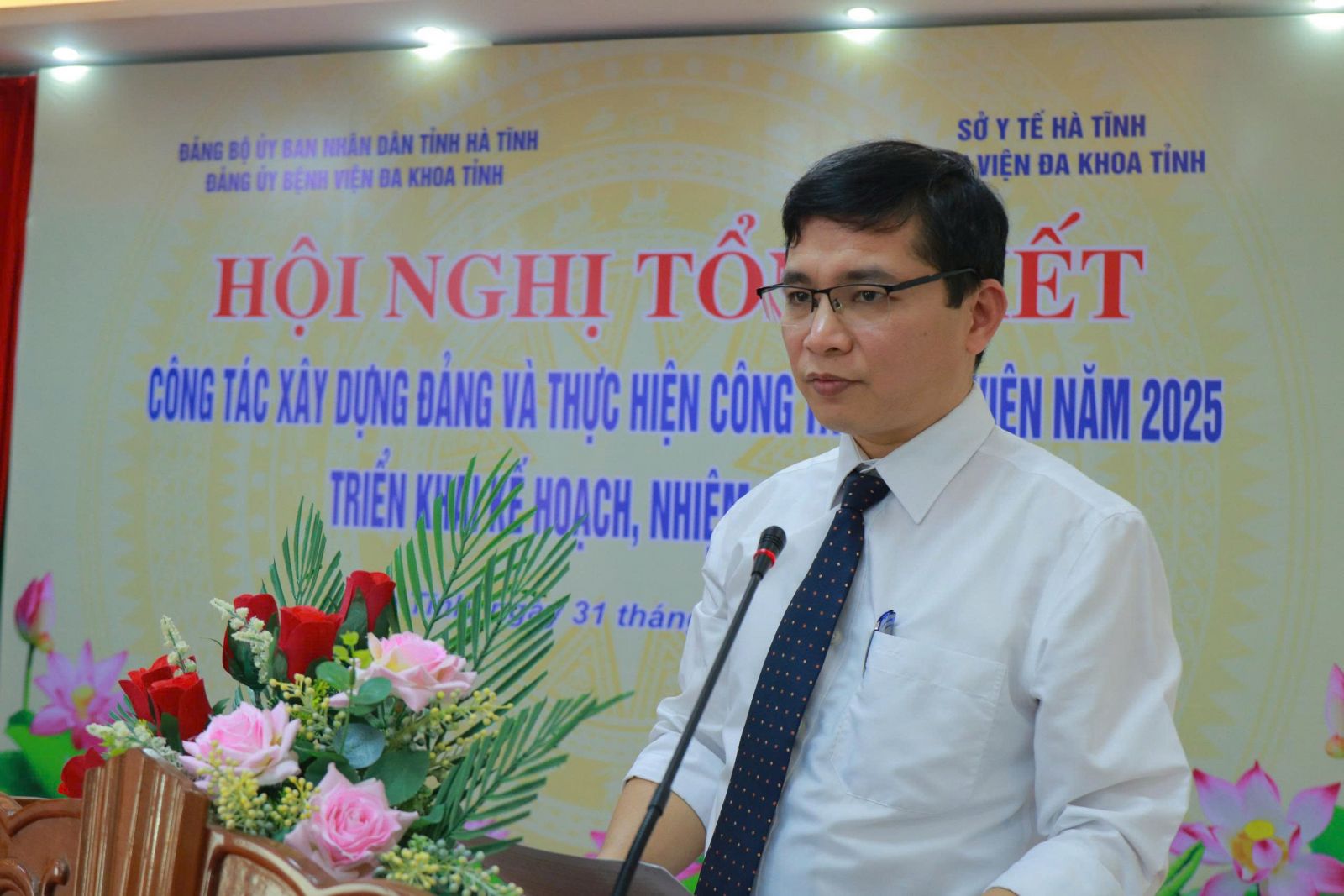 Chiều ngày 31/12/2025, Bệnh viện Đa khoa tỉnh Hà Tĩnh tổ chức Hội nghị tổng kết công tác xây dựng Đảng và công tác Bệnh viện năm 2025, triển khai kế hoạch, nhiệm vụ năm 2026.