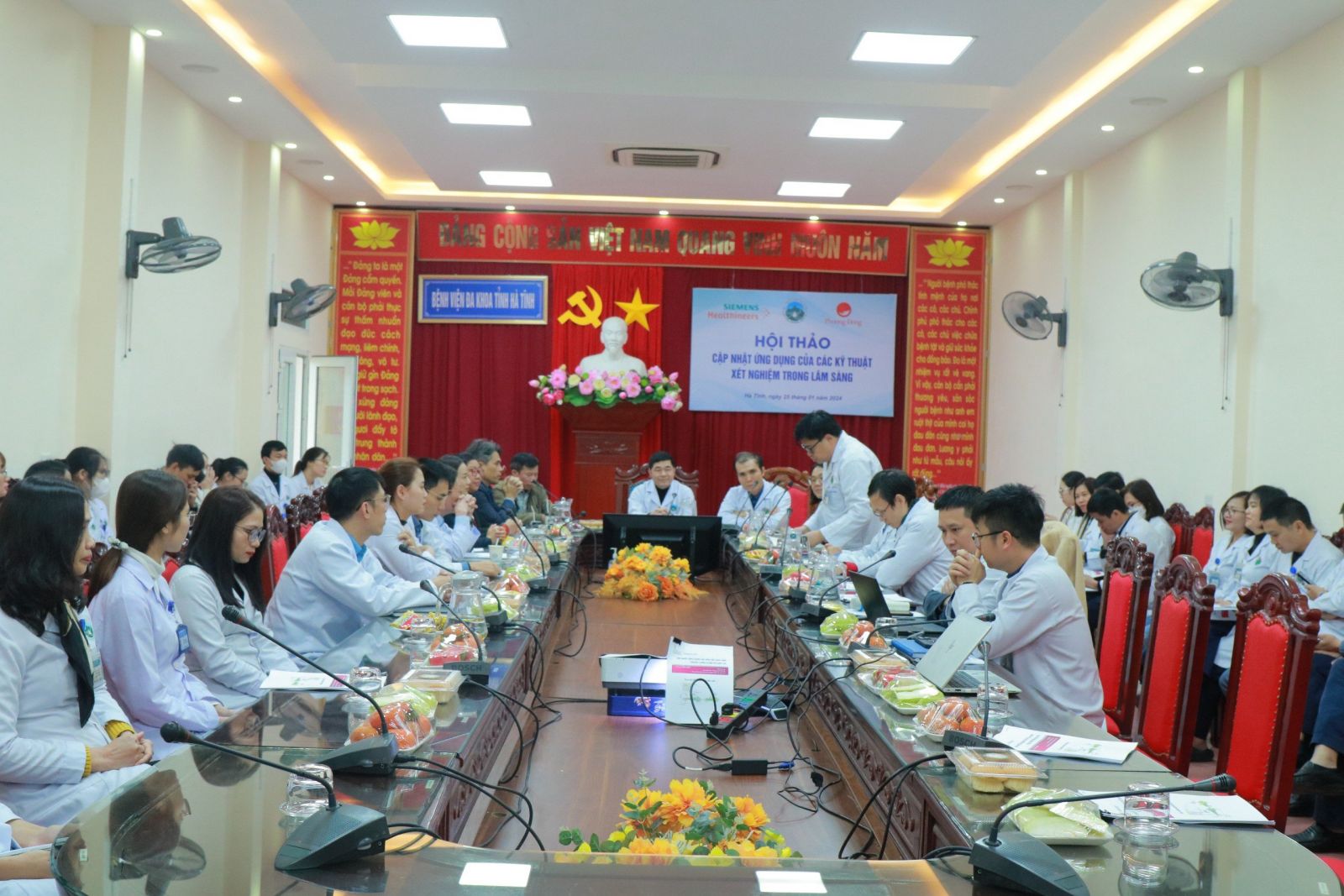 Chiều 25/1, Bệnh viện Đa khoa tỉnh Hà Tĩnh tổ chức hội thảo khoa học về cập nhật ứng dụng của các kỹ thuật xét nghiệm trong lâm sàng. Hơn 60 y bác sỹ đại diện cho các khoa, phòng tham dự hội thảo.