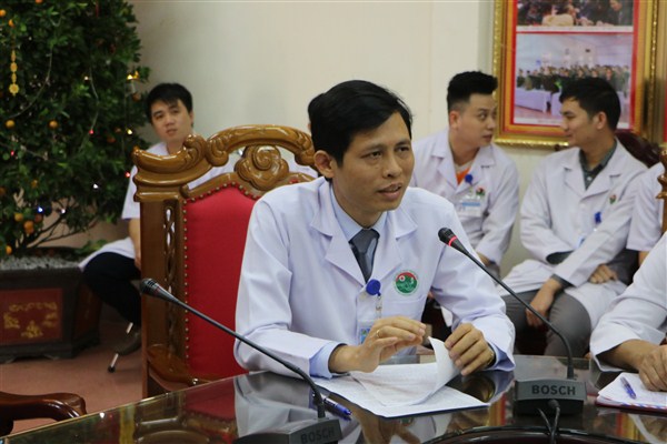 Tham dự cuộc họp có đồng chí Tôn Đức Quý, Phó Bí thư Đảng ủy, Phó Giám đốc bệnh viện, đồng chí Lê Ngọc Thanh, Phó giám đốc phụ trách chuyên môn cùng toàn thể các cán bộ viên chức tham gia trực Tết trong bệnh viện.
