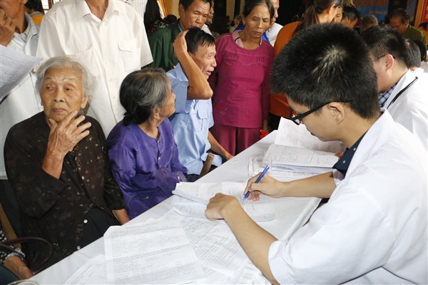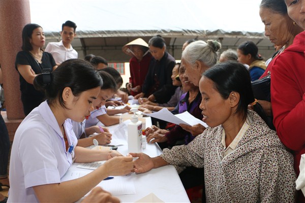 Trong thời gian 1 buổi, hơn 40 bác sỹ, dược sỹ và điều dưỡng cùng với các trang thiết bị máy móc hiện đại như máy điện tim, siêu âm đã tiến hành khám, tạo lập hồ sơ sức khỏe cá nhân cho 500 người dân là đối tượng chính sách, người già trên địa bàn xã.