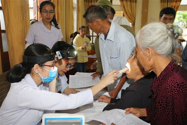 Tại đây, mỗi một người dân đến khám được làm Test kiểm tra đường huyết, đo huyết áp, siêu âm, điện tim và được khám các chuyên khoa như: nội, ngoại, tim mạch, khắm mắt, tai mũi họng, ung bướu và cấp phát thuốc miễn phí. Được biết, toàn bộ Test xét nghiệm đường huyết và thuốc chữa bệnh cho đợt khám lần này gần 40 triệu đồng do Hội Dược học Hà Tĩnh tài trợ.