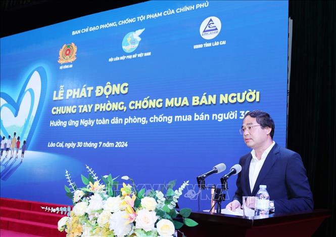 Sáng 30/7, tại Lào Cai, Bộ Công an, Trung ương Hội Liên hiệp Phụ nữ Việt Nam, UBND tỉnh Lào Cai tổ chức Lễ phát động chung tay phòng, chống mua bán người hưởng ứng “Ngày thế giới phòng, chống mua bán người” và “Ngày toàn dân phòng, chống mua bán người 30/7” với chủ đề “Không trẻ em nào bị bỏ lại phía sau trong cuộc chiến phòng, chống mua bán người”.
