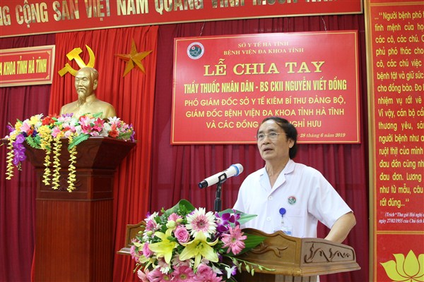 Sáng ngày 28/6/2019, Bệnh viện Đa khoa tỉnh Hà Tĩnh đã tổ chức Lễ tri ân chia tay Thầy thuốc nhân dân, Bác sỹ chuyên khoa II Nguyễn Viết Đồng, Phó Giám đốc Sở Y tế, Bí thư Đảng bộ, Giám đốc Bệnh viện nhận quyết định nghỉ hưu theo chế độ.
