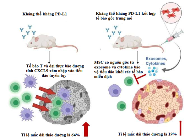 Kết quả cho thấy, sự ức chế tương tác giữa PD-1/PD-L1 với kháng thể kháng PD-L1 gây ra tỷ lệ mắc bệnh đái tháo đường là 64% ở chuột không được dùng MSC. Trong khi đó, tỷ lệ này ở chuột được tiêm MSC là 19%.