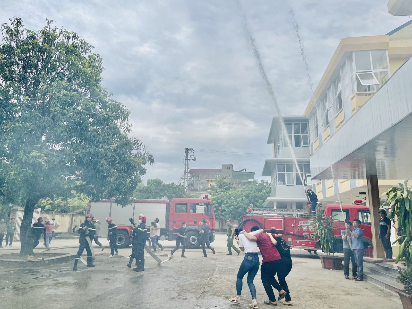 Ngoài ra, Phòng Cảnh sát PCCC&CNCH phối hợp với Bệnh viện Đa khoa tỉnh Hà Tĩnh đã tổ chức diễn tập phương án PCCC&CNCH. Tình huống giả định xảy ra cháy lớn, nhân viên của Bệnh viện đã gọi điện báo cháy cho lực lượng chữa cháy chuyên nghiệp, Ban lãnh đạo Bệnh viện đã chỉ đạo nhân viên vận chuyển bệnh nhân, sơ tán tài sản và thực hiện các phương án tại chỗ ban đầu... Do có sự chuẩn bị chu đáo, trách nhiệm cao của mỗi học viên, cùng với sự hướng dẫn nhiệt tình, chu đáo và phối hợp nhịp nhàng của lực lượng PCCC&CNCH chuyên nghiệp, đám cháy đã được dập tắt, bảo vệ an toàn về con người và tài sản của Bệnh viện, buổi diễn tập diễn ra an toàn, thành công.