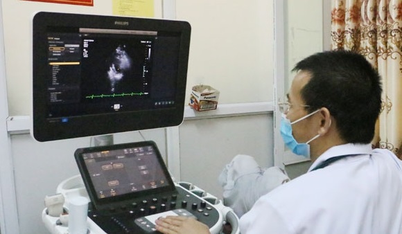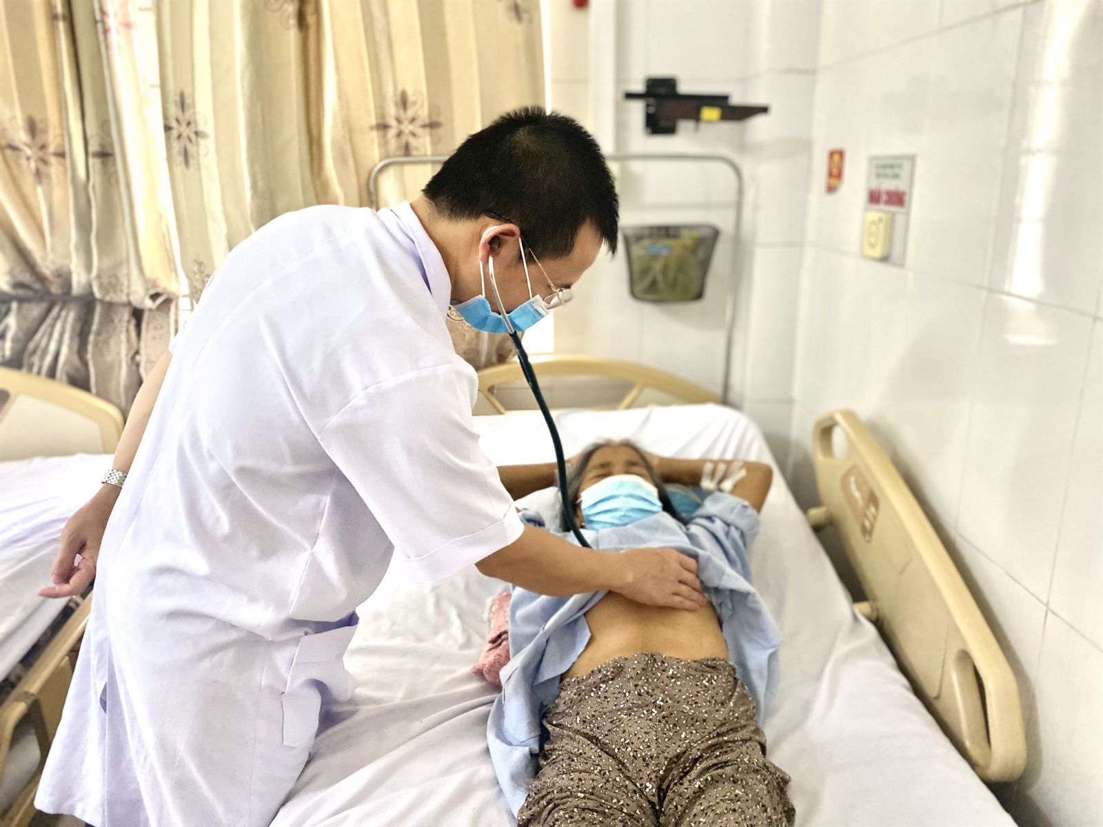 Bác sỹ Khoa Tim mạch (Bệnh viện Đa khoa tỉnh Hà Tĩnh) kiểm tra tình trạng bệnh cho một bệnh nhân.