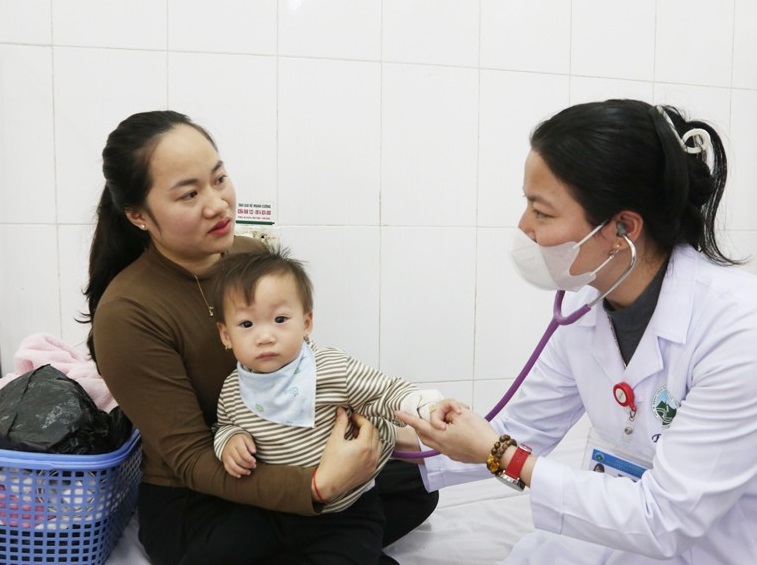 Bác sỹ Trần Thị Hương thăm khám cho một bệnh nhi bị viêm phổi.