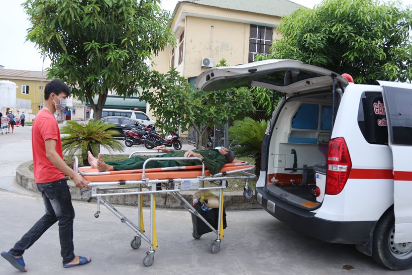 Một bệnh nhân được xe cấp cứu của anh Nguyễn Anh Tài chờ về Cẩm Xuyên trong sáng nay.