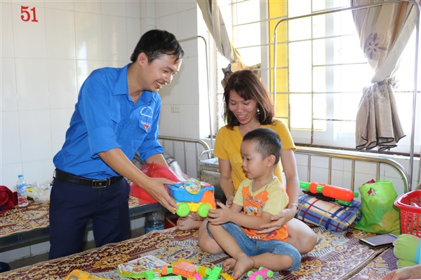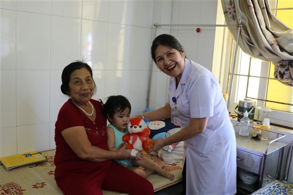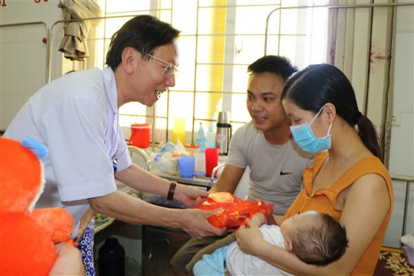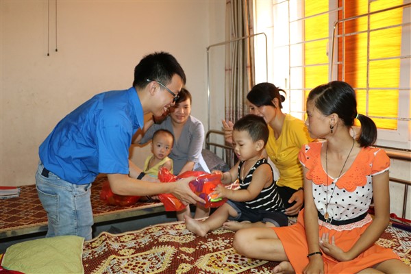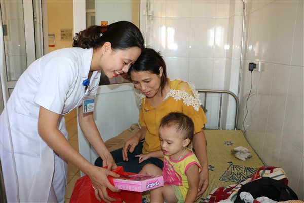Thầy thuốc ưu tú, Bác sỹ chuyên khoa I Trần Thị Dung, Phó Giám đốc Bệnh viện cùng Thầy thuốc ưu tú, Bác sĩ chuyên khoa II Vương Kim Đức, Chủ tịch Công đoàn và các đoàn viên thanh niên bệnh viện đã đến tặng hơn 150 suất quà cho các bệnh nhi.