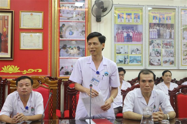 Đi cùng có đồng chí Nguyễn Tuấn, Phó Giám đốc Sở Y tế, các đồng chí lãnh đạo các phòng chức năng của Sở Y tế. Về phía bệnh viện có các đồng chí trong Ban giám đốc, trưởng phó các khoa, phòng, ban tham gia buổi làm việc.