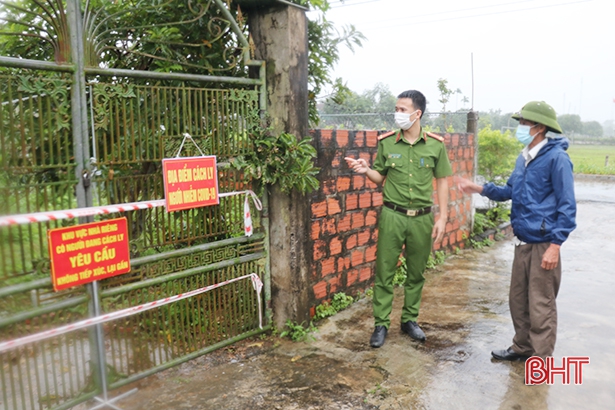 Lực lượng chức năng huyện Thạch Hà kiểm tra, giám sát việc cách ly điều trị tại nhà trường hợp F0 không triệu chứng.