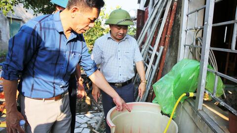 Lãnh đạo CDC Hà Tĩnh giám sát bọ gậy sốt xuất huyết tại TDP Hợp Tiến, phường Vũng Áng