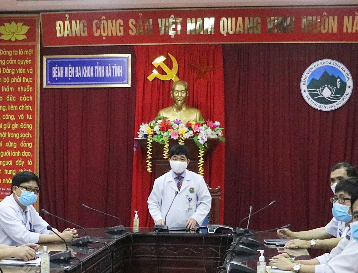 Đồng chí Lê Văn Dũng, Phó Giám đốc Bệnh viện Đa khoa tỉnh Hà Tĩnh đã trình bày tóm tắt công tác phòng chống dịch Covid – 19 của BVĐK tỉnh. Đồng chí cho biết, BVĐK tỉnh là Bệnh viện tuyến đầu của tỉnh, chính vì thế sẽ cố gắng đồng hành, hỗ trợ cùng các bệnh viện tuyến huyện để triển khai tốt công tác phòng, chống đẩy lùi dịch bệnh. Hiện nay, Bệnh viện Đa khoa tỉnh Hà Tĩnh đã triển khai xét nghiệm virus SARS-CoV-2, mổi ngày làm được 150 đến 170 mẫu, nếu tình hình số lượng cần xét nghiệm nhiều, bệnh viện có thể sẽ làm được 200 xét nghiệm/ngày. Trong thời gian tới, bệnh viện sẽ cập nhật tình hình số lượng xét nghiệm làm hằng ngày để các đơn vị chủ động trong công tác lấy và gửi mẫu đến bệnh viện Đa khoa tỉnh Hà Tĩnh.