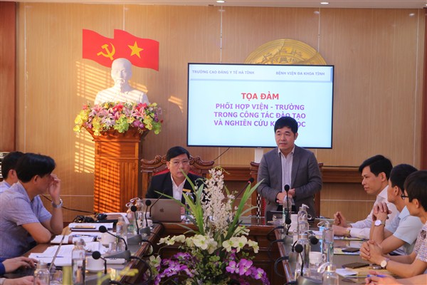 Chiều ngày 12/3/2020,Trường Cao đẳng Y tế Hà Tĩnh đã phối hợp với Bệnh viện Đa khoa tỉnh Hà Tĩnh tổ chức Tọa đàm Viện - Trường để tổng kết công tác phối hợp quản lý, giảng dạy, hướng dẫn thực hành lâm sàng cho học sinh, sinh viên và triển khai Kế hoạch phối hợp Viện - Trường trong năm 2020.