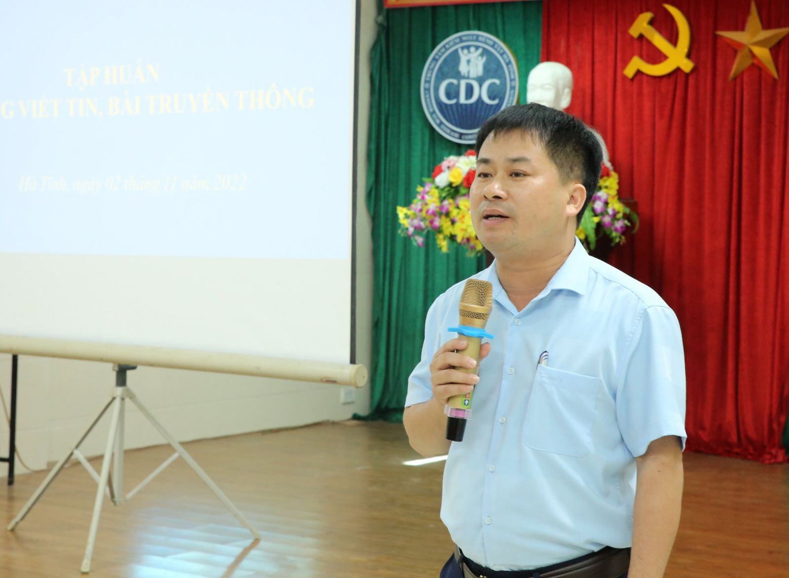 Sáng 02/11, Trung tâm Kiểm soát bệnh tật Hà Tĩnh tổ chức lớp tập huấn kỹ năng viết tin bài truyền thông cho 60 cán bộ làm công tác truyền thông tuyến tỉnh và huyện. Dự và chỉ đạo lớp tập huấn có Ths. Nguyễn Chí Thanh- Giám đốc Trung tâm Kiểm soát bệnh tật.