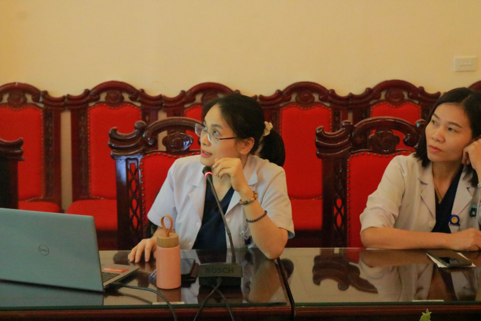 BSCKI Lê Huyền Anh, Phó Trưởng Khoa Điều trị theo yêu cầu trình bày về kỹ thuật nội soi buồng tử cung