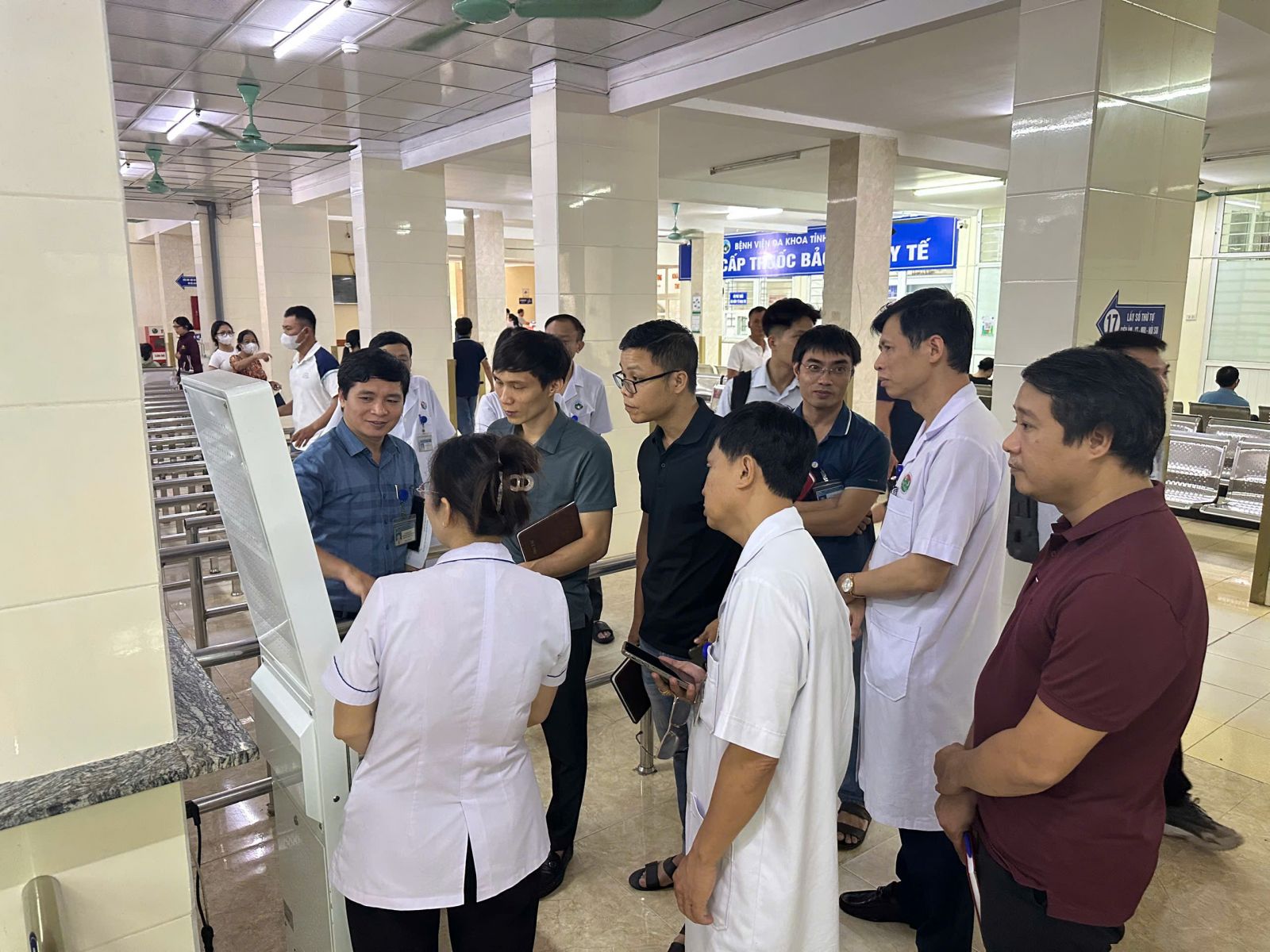 Đoàn làm việc đã tiến hành khảo sát, kiểm tra cơ sở hạ tầng công nghệ thông tin, các hệ thống HIS (quản lý thông tin bệnh viện), LIS (thông tin phòng xét nghiệm), RIS (thông tin chẩn đoán hình ảnh), PACS (lưu trữ và truyền tải hình ảnh), công tác bảo mật an toàn thông tin và một số khoa lâm sàng, cận lâm sàng của bệnh viện.