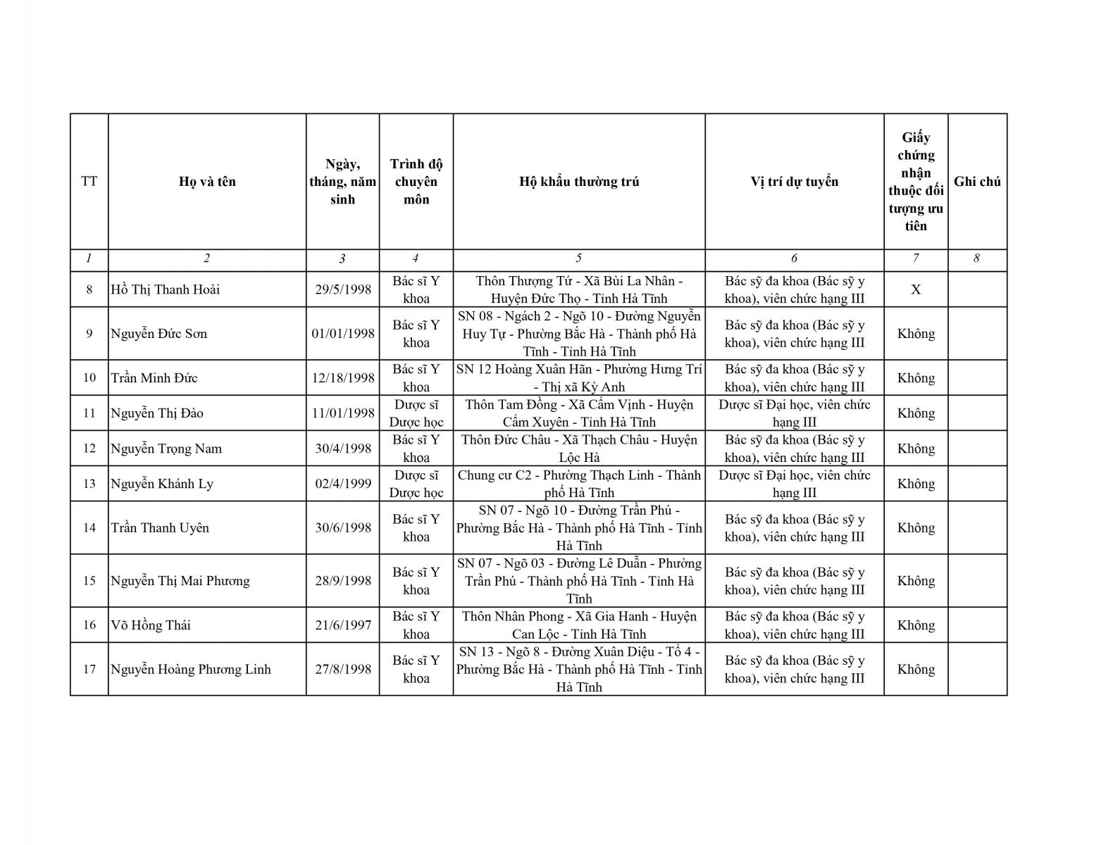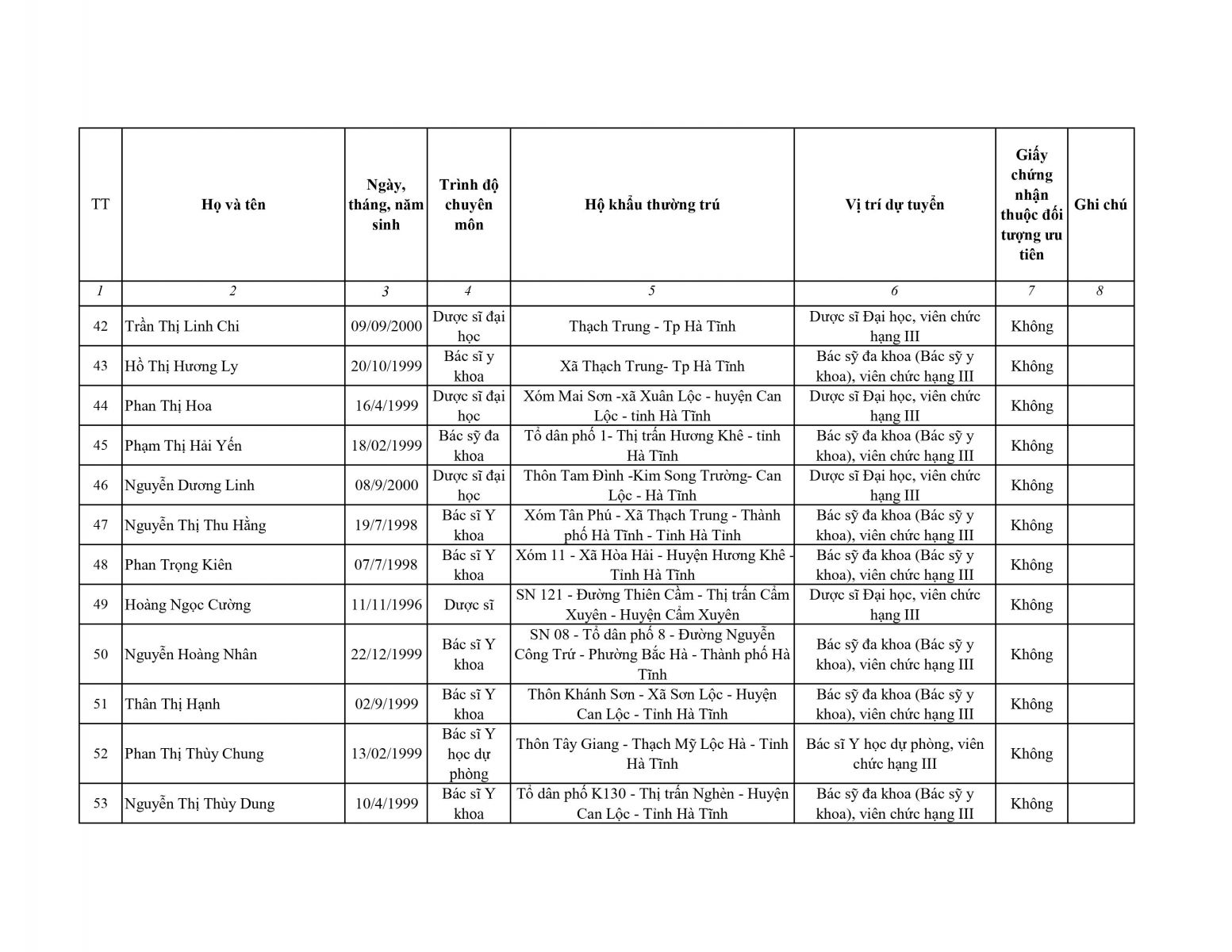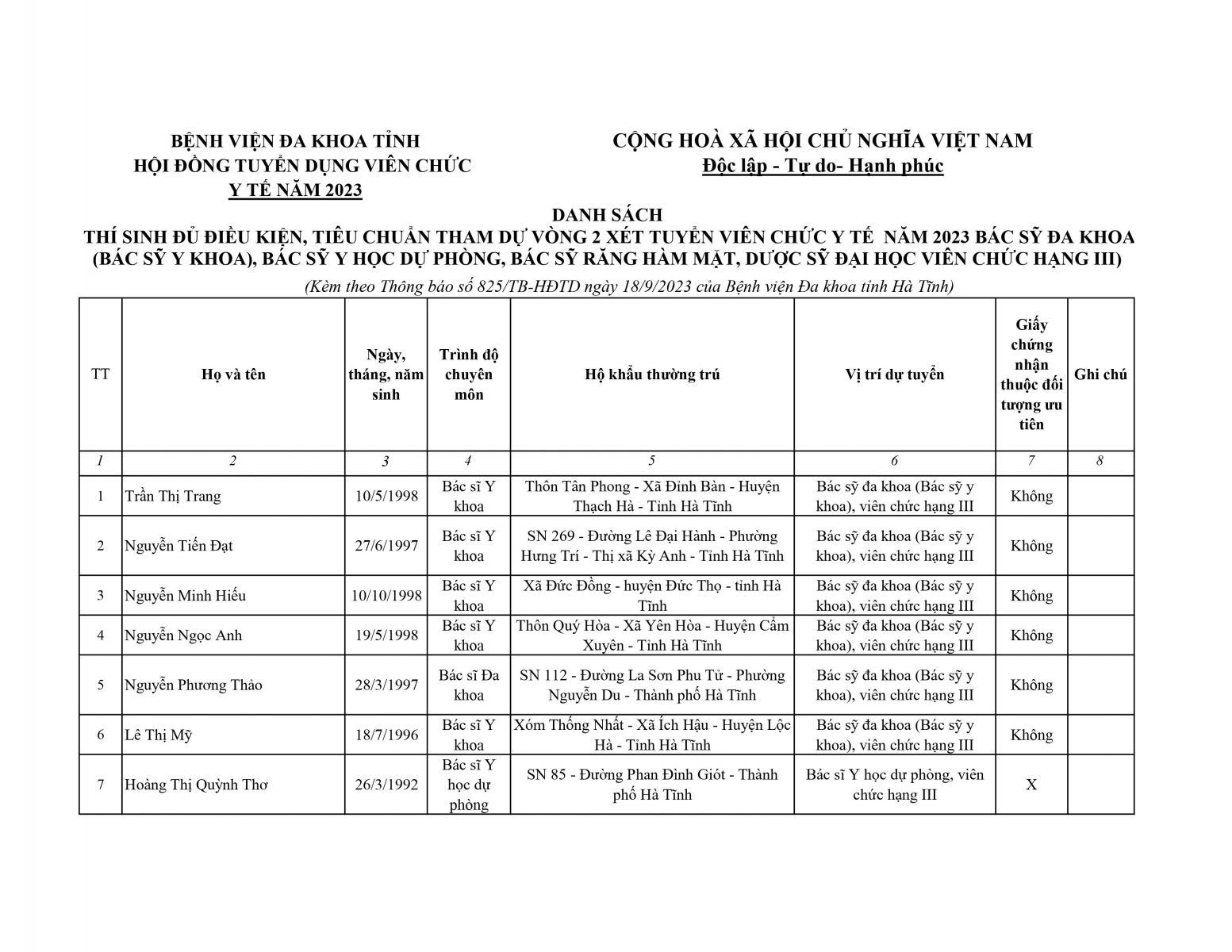 Danh sách thí sinh đủ điều kiện, tiêu chuẩn tham dự vòng 2 xét tuyển viên chức y tế năm 2023 như sau: