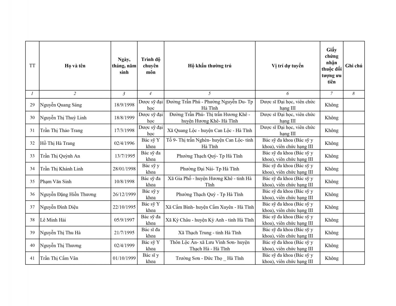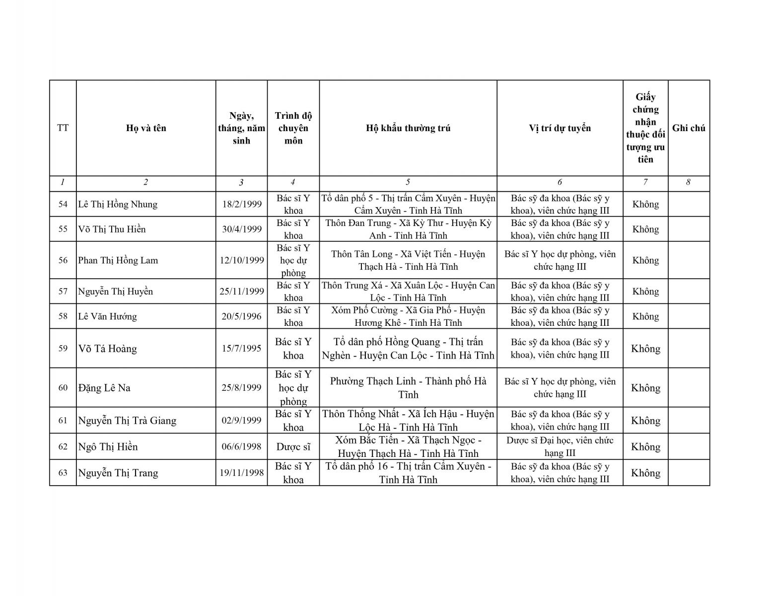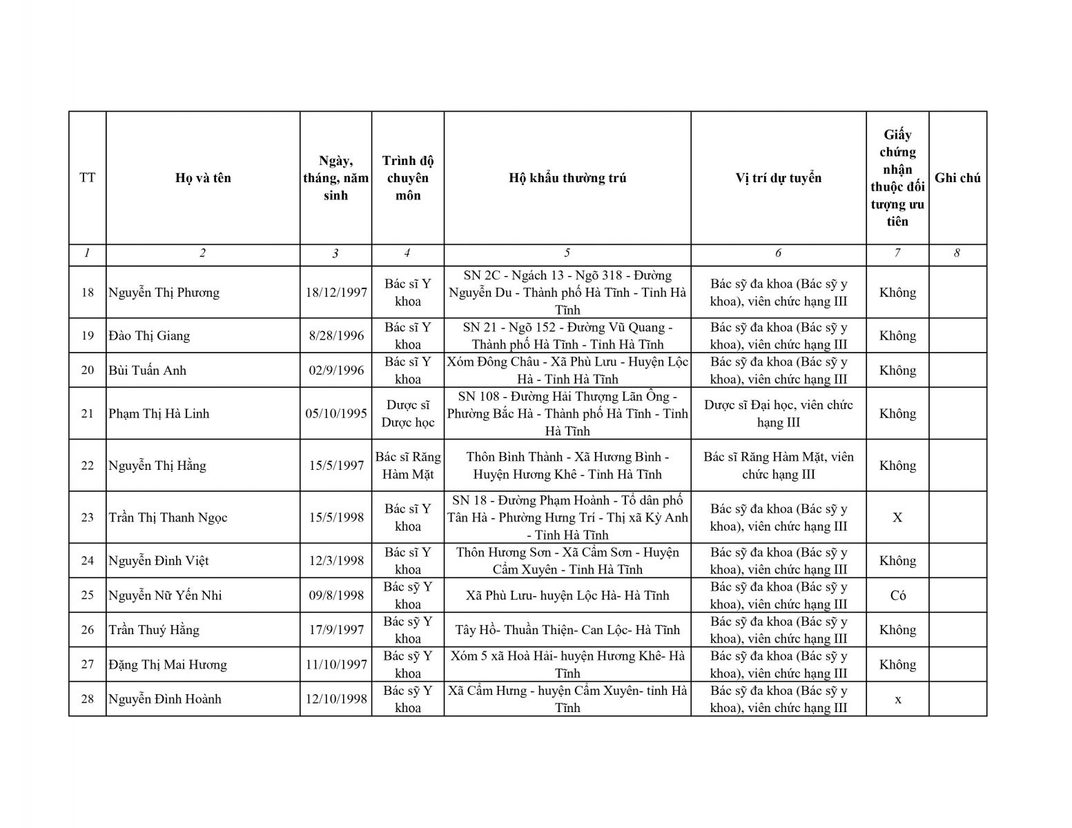 Danh sách thí sinh đủ điều kiện, tiêu chuẩn tham dự vòng 2 xét tuyển viên chức y tế năm 2023 như sau: