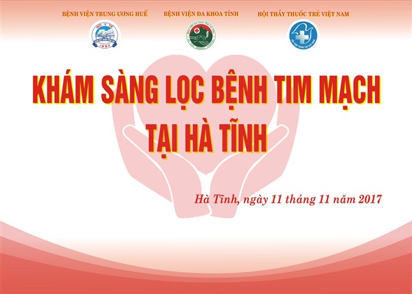 Ngày 11/11/2017 (thứ 7), Đoàn công tác Trung tâm Tim Mạch, Bệnh viện Trung ương Huế do PGS.TS.Nguyễn Tá Đông, làm trưởng đoàn phối hợp cùng Bệnh viện Đa khoa tỉnh Hà Tĩnh, Hội thầy thuốc trẻ tỉnh Hà Tĩnh sẽ tổ chức khám sàng lọc miễn phí cho các trẻ em nghi ngờ bị bệnh tim bẩm sinh và các bệnh tim mắc phải ở người lớn trên địa bàn tỉnh Hà Tĩnh.