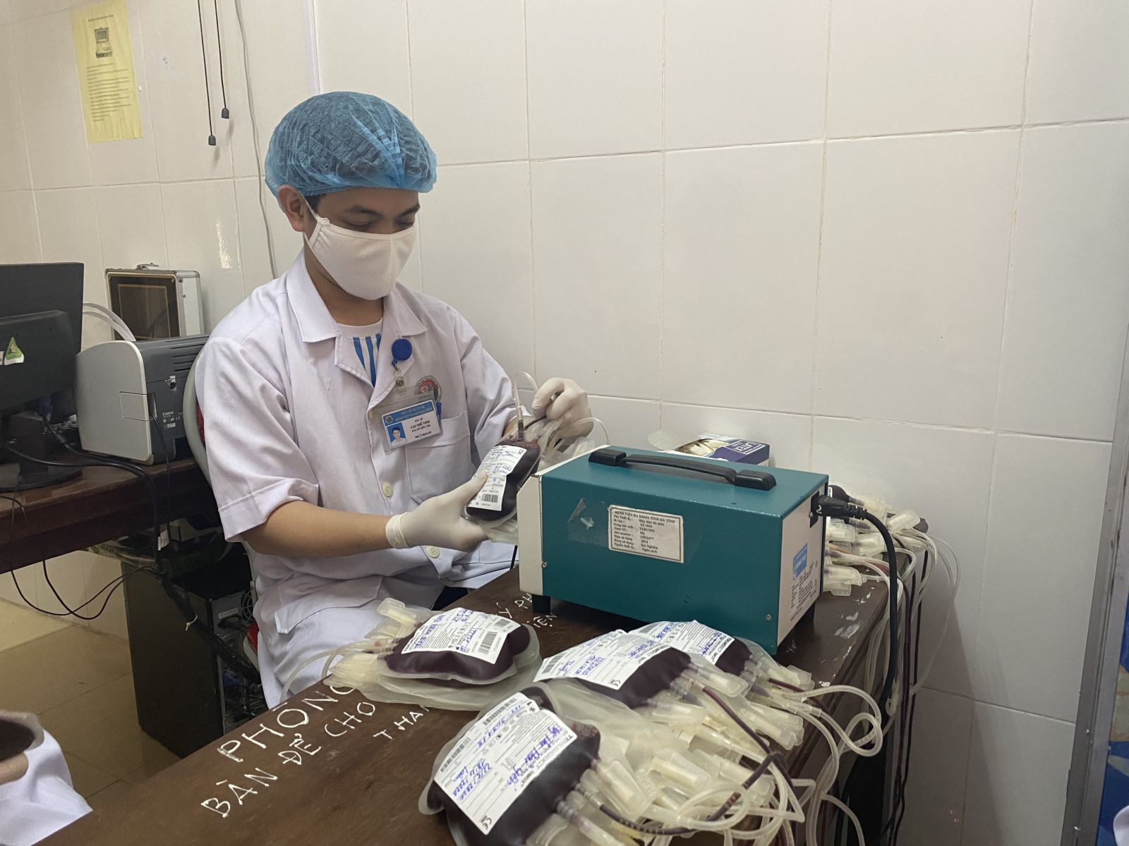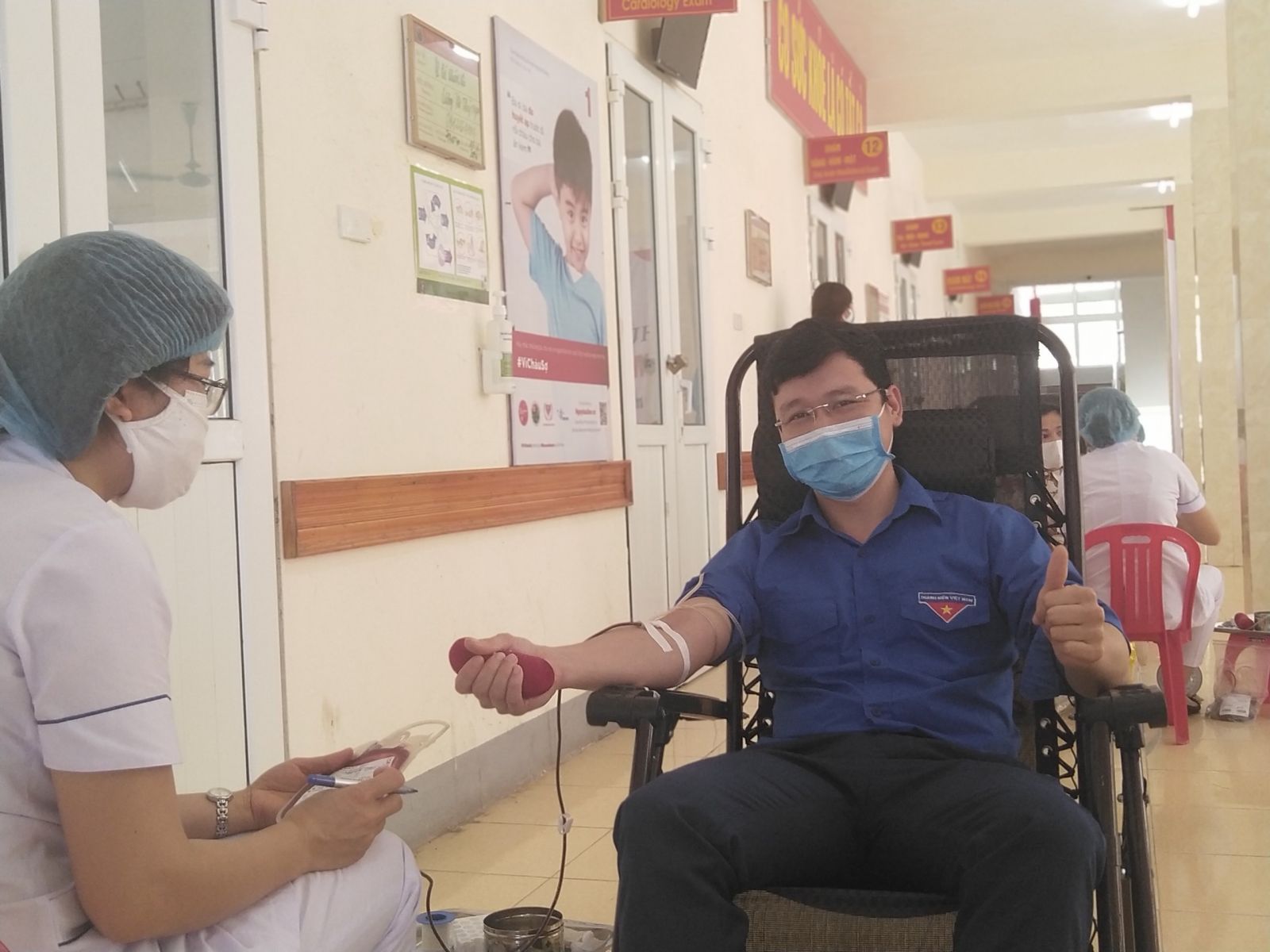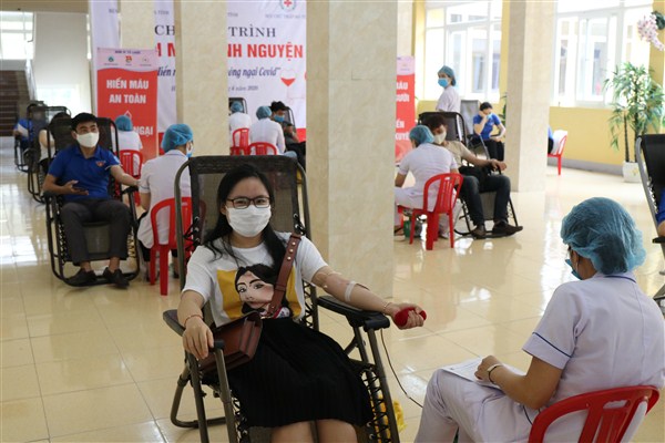 Tình nguyện viên đến hiến máu sẽ được hướng dẫn, sắp xếp vào khám, chỗ ngồi chờ, các vị trí hiến máu đảm bảo khoảng cách trên 2m, đeo khẩu trang thường xuyên và sát khuẩn tay nhanh trước và sau khi tham gia hiến máu.
