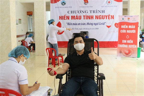 Hưởng ứng kỷ niệm 20 năm "Ngày toàn dân hiến máu tình nguyện", thực hiện lời kêu gọi toàn dân hiến máu của Tổng Bí thư, Chủ tịch nước Nguyễn Phú Trọng, ngày 18/4/2020, được sự đồng ý của Thường trực Tỉnh ủy, Bệnh viện Đa khoa tỉnh Hà Tĩnh phối hợp cùng Tỉnh đoàn Hà Tĩnh và Hội chữ thập đỏ tỉnh Hà Tĩnh đã tổ chức chương trình hiến máu tình nguyện góp phần khắc phục tình trạng khan hiếm máu điều trị cho người bệnh.