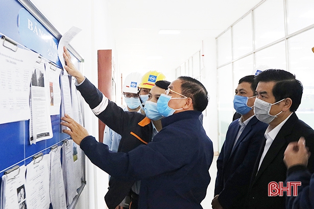 Đồng chí Lê Đình Sơn , Ủy viên Ban chấp hành Trung Ương Đảng, Bí thư Tỉnh ủy, Chủ tịch Hội đồng nhân dân tỉnh kiểm tra công tác phòng chống dịch tại Fomosa Hà Tĩnh (Ảnh: Baohatinh)