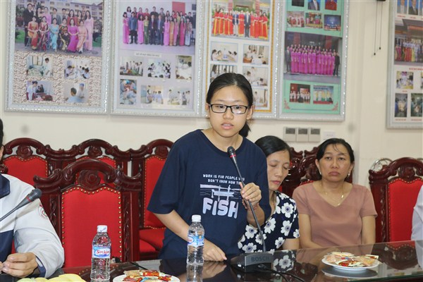Thay mặt các bạn có thành tích cao trong học tập, cháu Huyền Trang đạt danh hiệu học sinh giỏi cấp tỉnh đã gửi lời cảm ơn đến sự quan tâm của lãnh đạo bệnh viện và xin hứa sẽ cố gắng nhiều hơn nữa, đạt nhiều kết quả cao trong học tập cũng như hoạt động ngoài xã hội để không phụ lòng các bậc cha mẹ.