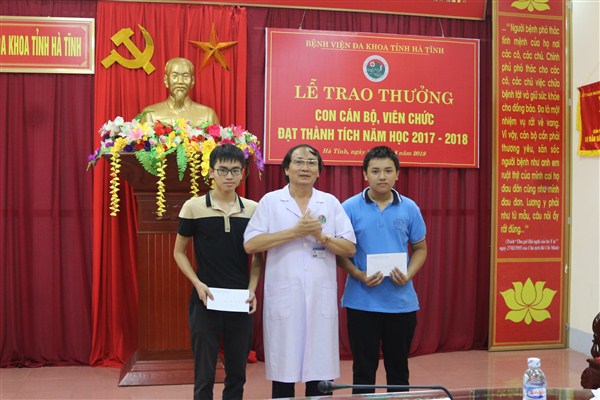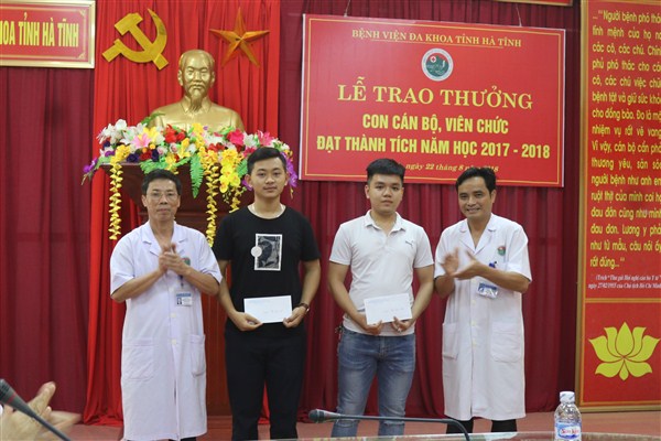 Kết thúc năm học 2017 - 2018, Bệnh viện Đa khoa tỉnh vinh dự có 03 cháu là con cán bộ, viên chức đạt giải cao trong các cuộc thi học sinh giỏi cấp quốc gia; 14 cháu học sinh giỏi cấp tỉnh và 12 cháu trúng tuyển vào các trường đại học công lập trong cả nước.