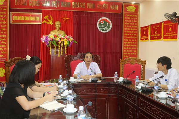 Buổi làm việc có sự tham gia của Thầy thuốc nhân dân, Bác sỹ chuyên khoa II Nguyễn Viết Đồng, Phó Giám đốc Sở Y tế, Giám đốc Bệnh viện Đa khoa tỉnh Hà Tĩnh; đồng chí Hoàng Song Hào, Trưởng phòng Quản lý chất lượng cùng các trưởng khoa, phòng, cán bộ y tế có liên quan.