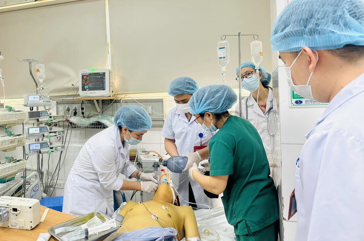 Bệnh nhân mắc viêm gan B nặng đang được các BS đặt ống Nội khí quản