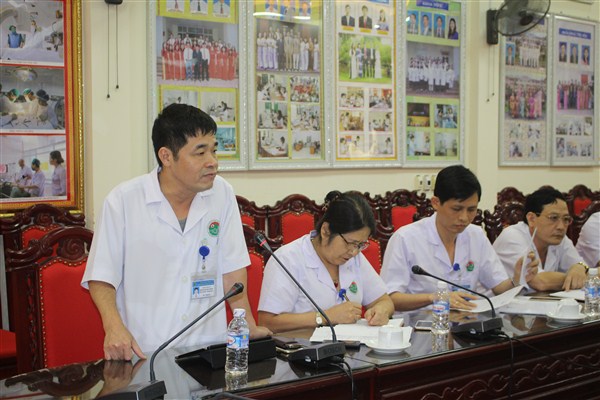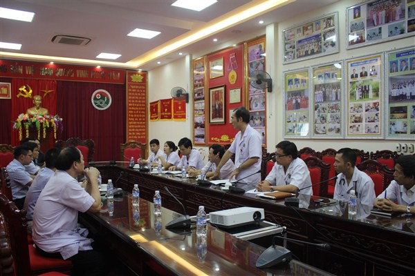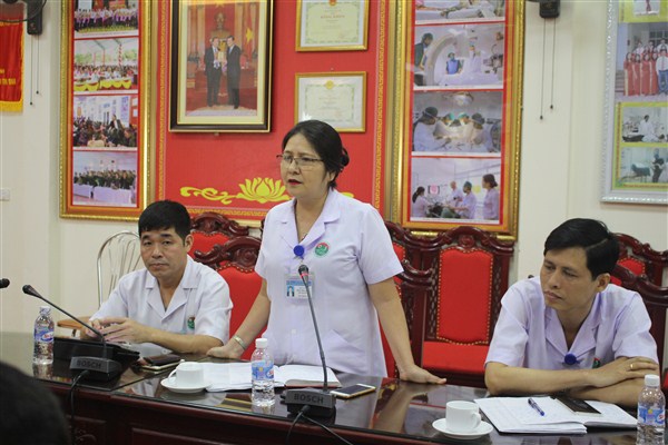 Tiếp đoàn có Thầy thuốc ưu tú, Bác sỹ chuyên khoa I Trần Thị Dung và Ths.Bs Hoàng Quang Trung, Phó Giám đốc Bệnh viện cùng các đồng chí trưởng phó các khoa, phòng liên quan.