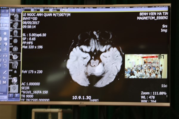 Tại hội thảo, bác sỹ chẩn đoán hình ảnh BVĐK tỉnh kết nối với Bệnh viện Bạch Mai hỗ trợ đọc kết quả trực tuyến về một ca bệnh khó