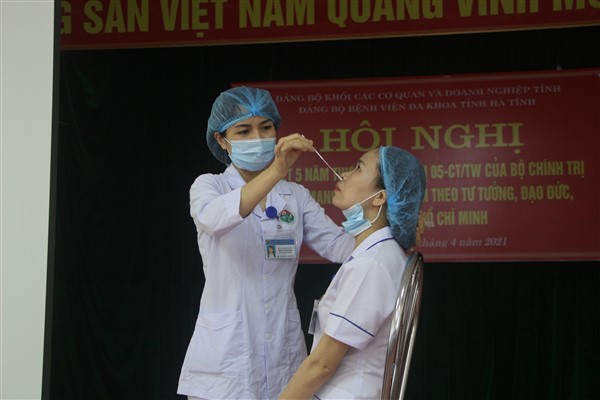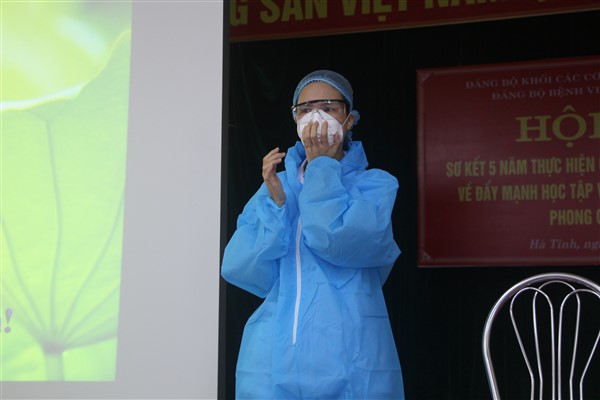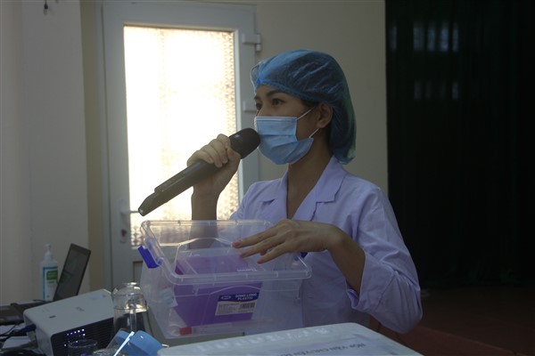 Tập huấn lấy mẫu, bảo quản, vận chuyển bệnh phẩm nghi nhiễm COVID-19 tại Bệnh viện Đa khoa tỉnh Hà Tĩnh